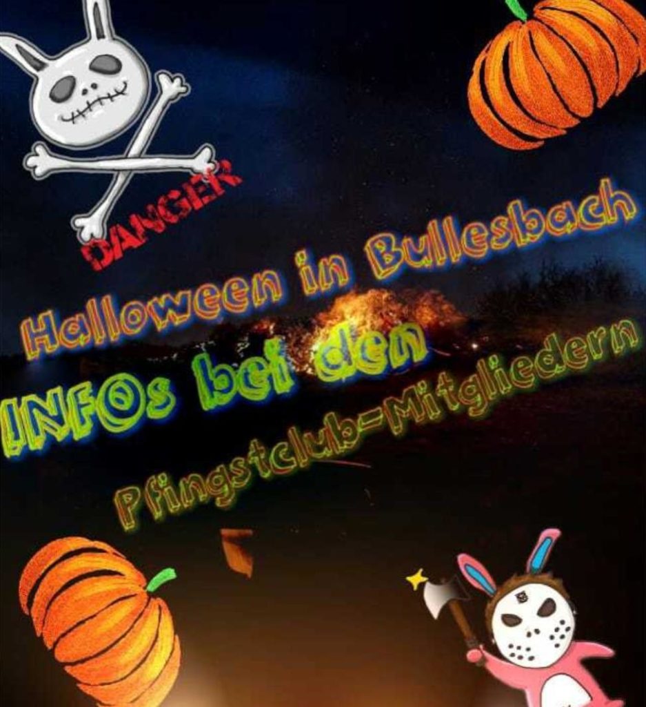 Nach 10 Jahren Pause veranstaltet Büllesbach am 31.10. wieder ihre legendäre Halloweenparty auf deren Pfingstplatz. Unkostenbeitrag pro Person 40,- alles inklusive.