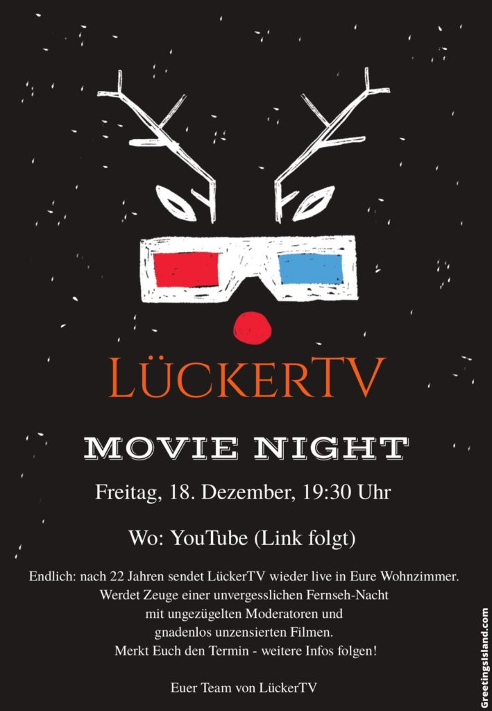 Die Weihnachtsfeier in der Dorfhütte muss wegen Corona leider ausfallen. Aber LückerTV lässt euch nicht allein. Feiert mit uns Live! Auf Youtube!